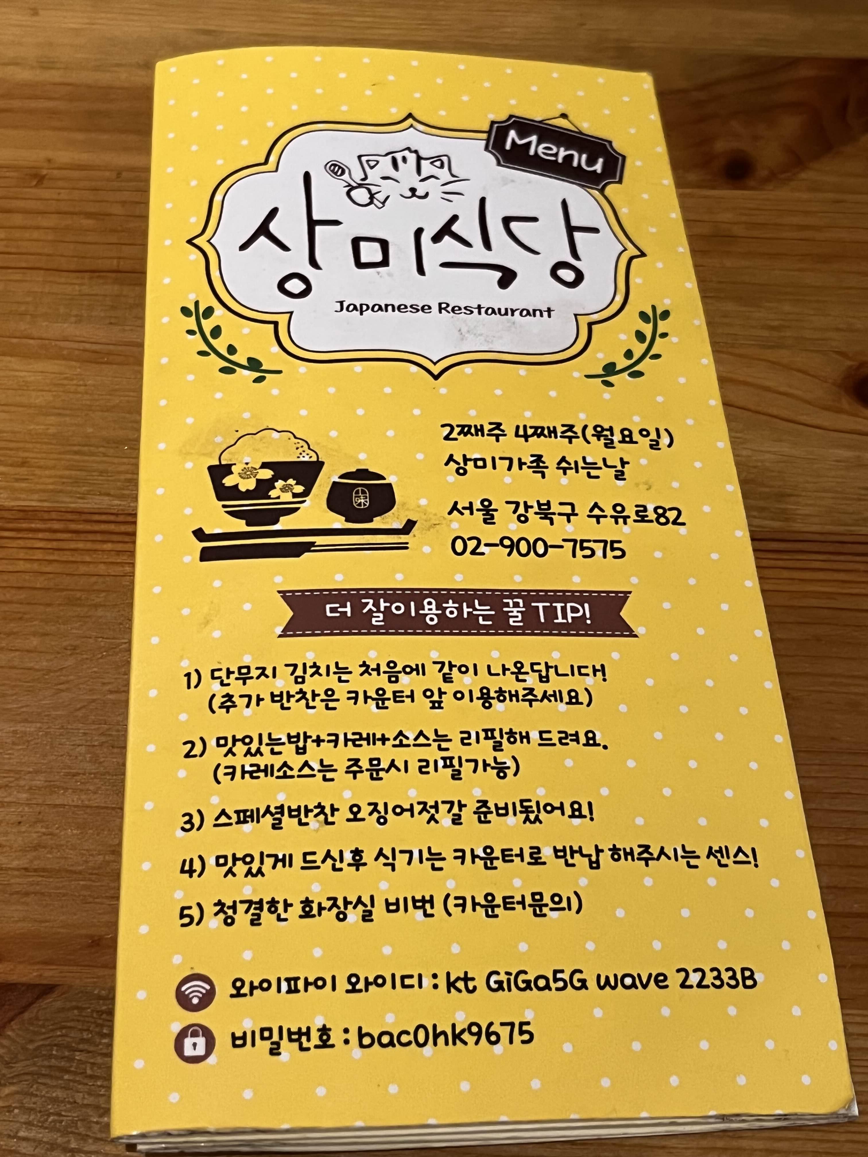 상미식당은 대한병원과 수유동 약국 근처에 있는데요. 식당이 작기는 하지만, 주변 가게들과는 다른 분위기의 간판과 가게라서 찾기 어렵지는 않습니다.
