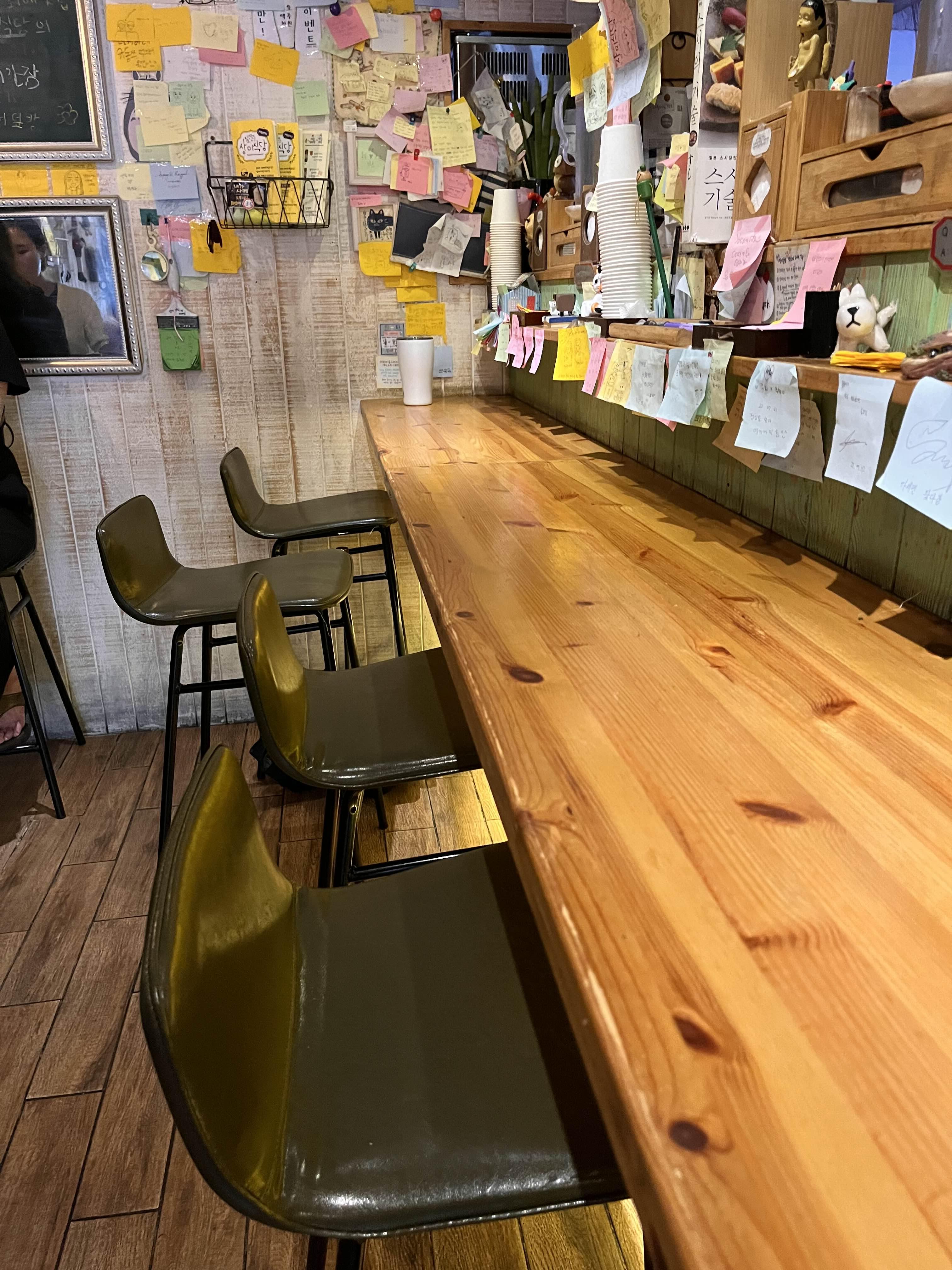 작은 테이블은 2인석이라 3인 이상은 바 테이블에 앉아야합니다. 1~2인이 방문했다면, 어딜 앉아도 상관 없을 것 같습니다.